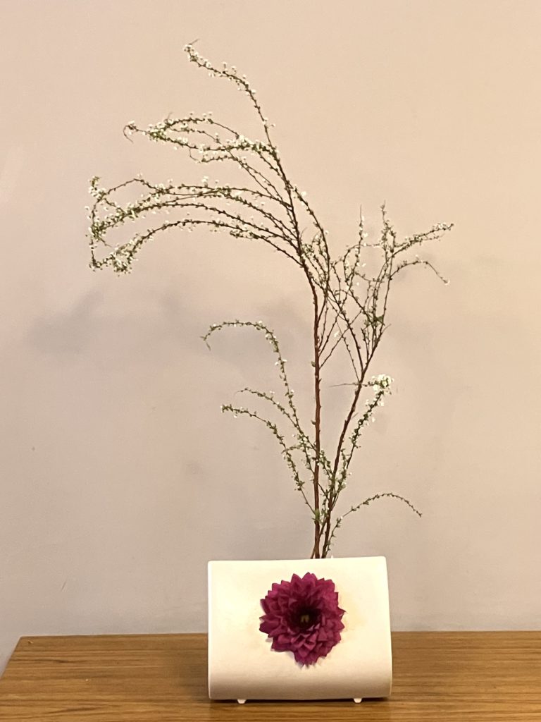 雪柳の枝の面白さを活かして入れました