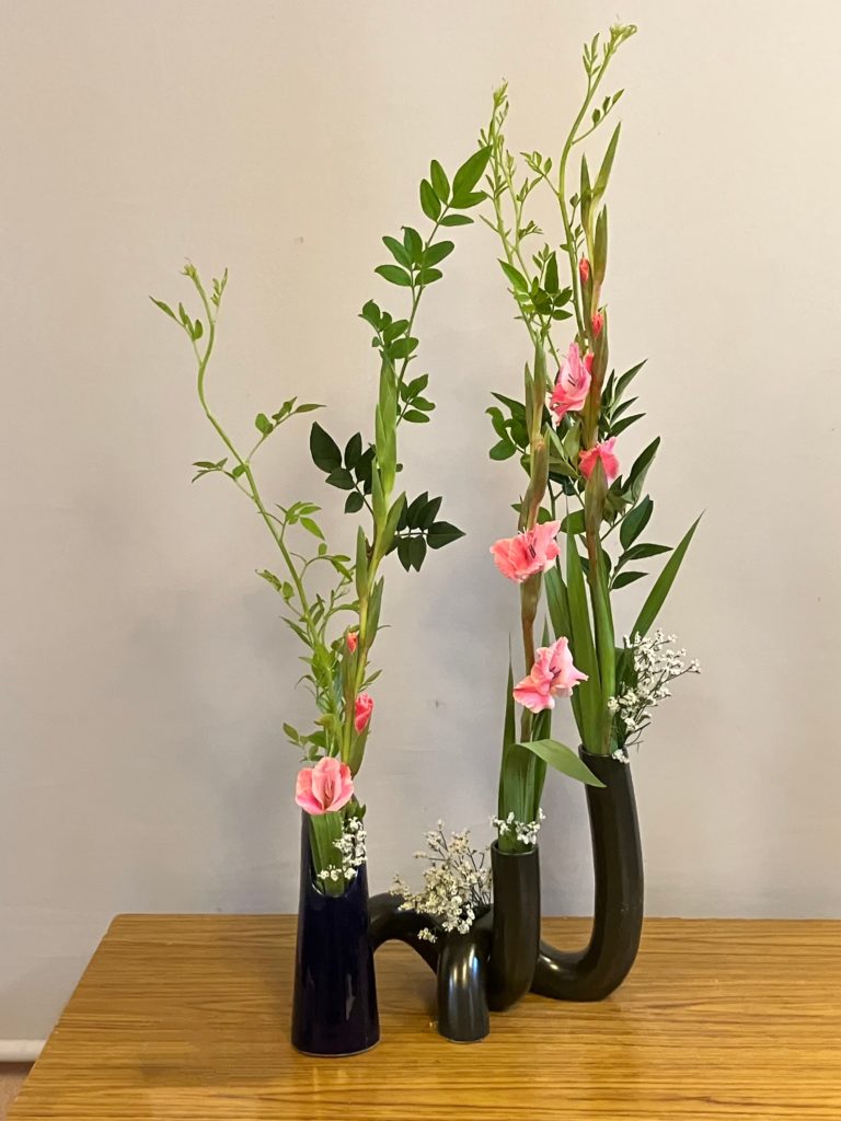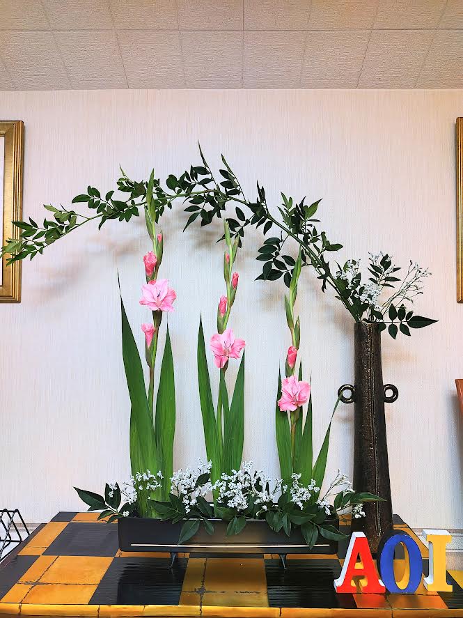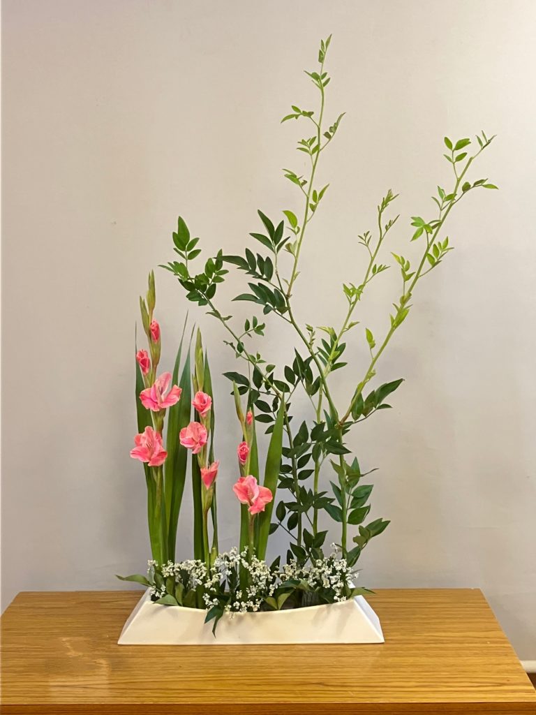 各花材の特徴を活かしてのびのびと生けました。